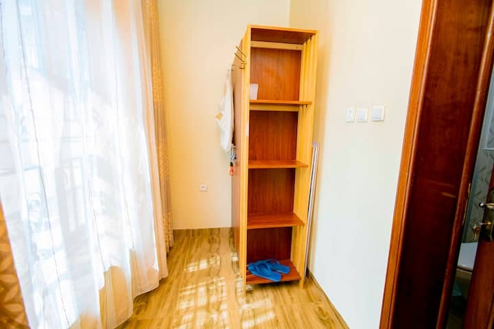 Comfortable double room with direct access to a private terrace overlooking the garden. Located in a quiet guest house in Gisozi, Kigali, this room offers a peaceful retreat for couples or solo travelers. Includes a private bathroom, cozy bedding, and natural light. Enjoy morning coffee or evening relaxation on the terrace. Amenities include free Wi-Fi, daily cleaning, and secure parking. Close to local shops and attractions. A perfect blend of comfort, privacy, and outdoor charm.